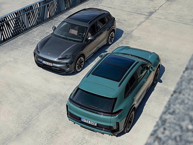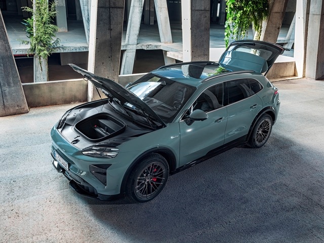 A sliding Panoramic Roof can feature Variable Light Control. A liquid crystal film is installed and can be switched to become clear or matte. Porsche EV owners can extend or open the front glass portion. Optional surface heating - a fanless surface heating system - increases thermal comfort for all five passengers. Porsche Cayenne Electric models offer 28 to 56 cubic feet of cargo space to accommodate family luggage.