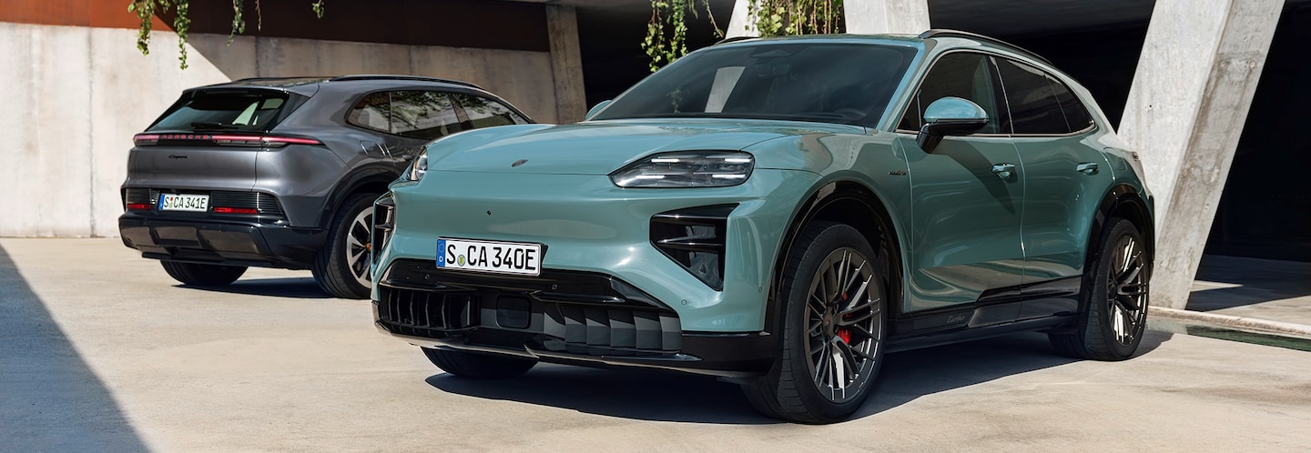 Outstanding electric performance meets everyday usability in the new Porsche Cayenne Electric, which provides up to 400 kW of charging power and 399 miles of electric range. You also get the performance of a super sports car and the uncompromising off-road capability of an adventure vehicle. Porsche Cayenne Electric SUVs generate 435 horsepower through two electric motors. Generating 1,139 horsepower, the powerful Cayenne Turbo Electric has an acceleration time of 2.5 seconds via Launch Control. The Push-to-Pass can be activated for 10 seconds. Known for its motorsport innovation, the Turbo variant features direct oil cooling of the electric motor on the rear axle to ensure high continuous output and efficiency. The Cayenne Turbo Electric is the most powerful production Porsche of all time. The Turbo Electric benefits from Porsche Torque Vectoring Plus and a limited-slip rear differential.
