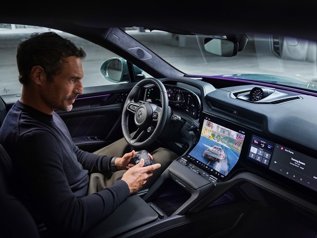 Porsche Digital Experience headlines the tech lineup of the fully electric Cayenne. The new Porsche Digital Interaction sets newfound standards with intuitive operation and customizable widgets. The Porsche Driver Experience includes the largest display area in a Porsche to date. The Flow Display is a curved OLED panel that merges into the center console. A fully digital instrument cluster features a 14.25-inch display with OLED technology. Are you riding shotgun in the Porsche Cayenne Electric? You have access to the 14.9-inch passenger display. There are also plenty of entertainment options for your traveling party. Through the Porsche Digital Key, your smartphone or smartwatch can become the electric vehicle's keys. Share digitally with up to seven other users.