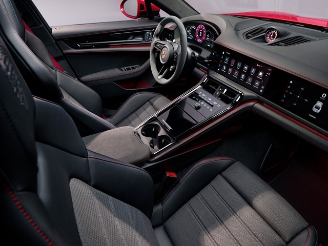Porsche Driver Experience serves as the driver-centric Panamera operating concept. The Porsche sedan's digital instrument cluster has a 12.6-inch curved display, and there are various display formats to select. Options include a map section in the central round instrument, a full area navigation map, reduced view, typical round instruments, and optional view with Night Vision Assist. Riding shotgun in the Porsche Panamera has never been more fun, thanks to the sedan's optional 10.9-inch front passenger display.